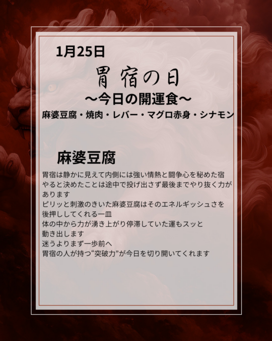 1月25日 胃宿