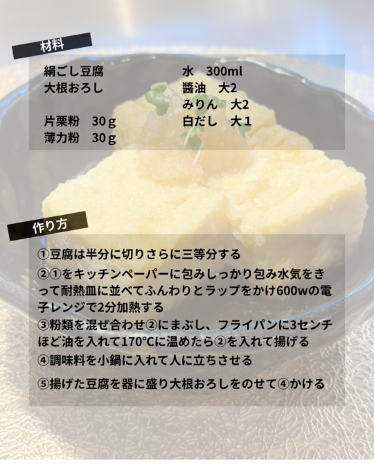外はカリッと中はふんわり優しい 揚げ出し豆腐